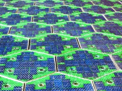 經(jīng)過不懈努力,布魯索夫婦發(fā)明出一種正六邊形的太陽能電池板(SolarRoadway),其表面是一種超耐磨的特殊玻璃,承重最高達(dá)125噸,能保證汽車的安全行駛。同時(shí),太陽能電池板的最底層使用的是回收塑料顆粒,綠色環(huán)保。太陽能電池板被發(fā)明出來后,布魯索夫婦就在自己家的后院開始了鋪路測(cè)試,并打造出一個(gè)模擬停車場(chǎng)。