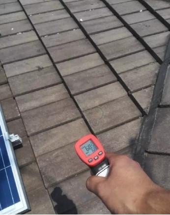 我們測得組件下沒有被太陽直射的屋面溫度為48度。