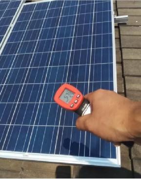 組件表面測得溫度為57.5度,我們用手觸摸,發現和屋面溫度接近,可能由于玻璃表面反光,導致測得溫度偏低。
