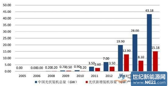 從國家能源局最新公布的數據來看,十三五我國光伏裝機150GW。而目前2015年底光伏總裝機量僅有43.18GW,也就是說未來5年年均光伏潛在裝機規模將達到20GW以上。
