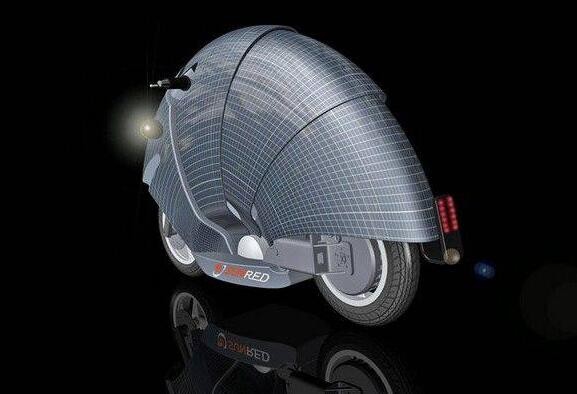 這是一輛通過太陽能充電的摩托,外形模仿穿山甲設計,充電只需把這層太陽能拉出在太陽底下就可以了。