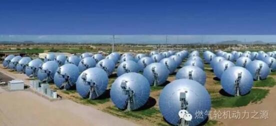CSP中有一種類型叫parabolicdish,即拋物面蝶式,用斯特林發動機驅動發電機發電。與其他CSP發電技術集中用渦輪發電機進行發電,而碟式系統則是每個獨立的聚熱模塊都能就地進行熱電轉換,具有靈活部署的模塊化特點。單臺斯特林的功率為1-30kW,CSP系統既適合以數百千瓦的規模進行分布式部署,又有能力構建數百兆瓦的大型電站。斯特林發動機的可靠性始終是一大硬傷,微型燃氣輪機(MGT)則可以解決這一難題。