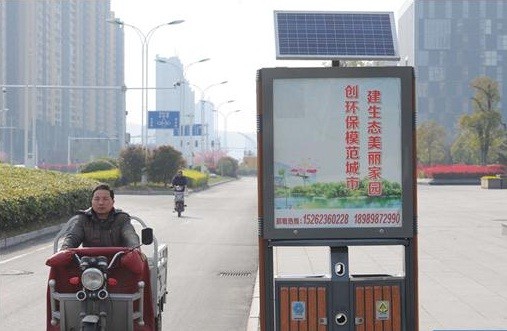 太陽能垃圾箱。在國內已經開始廣泛應用。太陽能垃圾箱具有節能環保、美觀實用和亮化效果等特點,垃圾箱頂部的太陽能板在充分接受日照的情況下,能夠在夜晚支持垃圾箱內LED節能燈連續照明6個小時,中部是換畫廣告,下部為果皮垃圾箱。在對垃圾分類收集、滿足群眾垃圾排放的同時,也提高了城區夜景亮化效果,方便群眾夜間出行。未來的生活,可以說會完全依賴新能源。