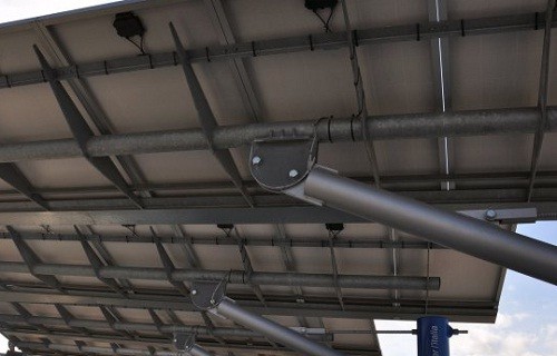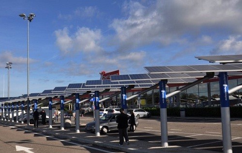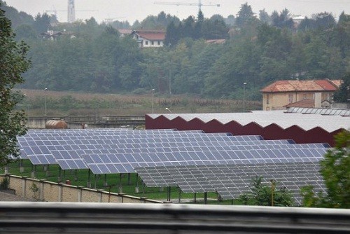 意大利米蘭往佛羅倫薩去的高速公路一個服務區里的光伏電池群。