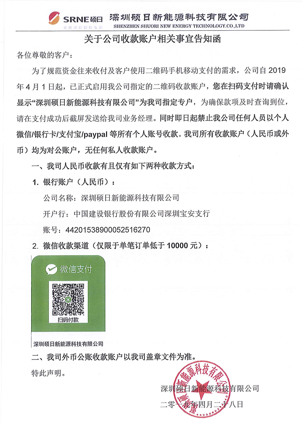 關(guān)于公司收款賬戶(hù)相關(guān)事宜告知函